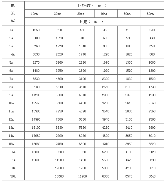 * 剩 磁:≤10mT, 工作氣隙10mm時