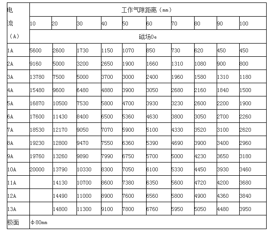 2.3 磁場(chǎng)強(qiáng)度: H≥0.5T,工作氣隙80mm時(shí)